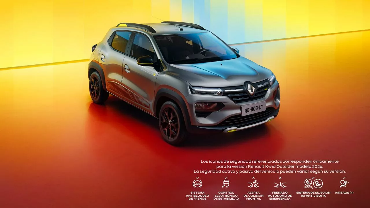 El sistema de frenado antibloqueo (ABS) evita que las ruedas de Kwid se bloqueen cuando frenas, lo que facilita el control de la trayectoria del vehículo.
