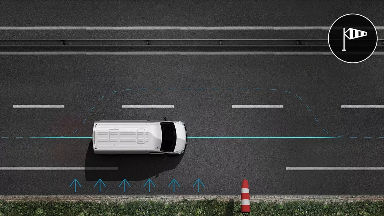 Ayuda a mantener la trayectoria del vehículo por encima de los 70 Km/hal conducir con vientos laterales fuertes o cuando otro vehículo lo adelanta.