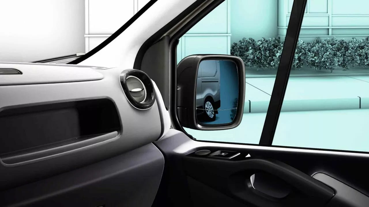 El espejo Wide View integrado en el parasol permite ampliar tu campo de visión lateral y visualizar la zona de ángulo muerto.